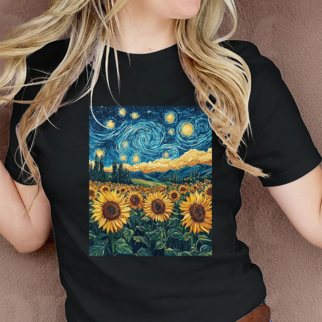 Sunflowers Starry Night Van Gogh T-Shirt | Famous Art Graphic - Game Day Essential for Team Fans